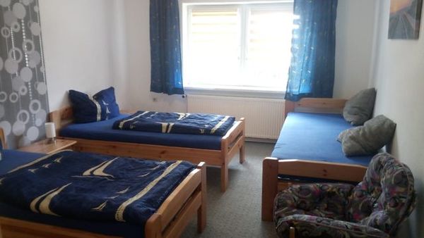 Unser günstiges Doppelzimmer erwartet Sie in familiärer Atmosphäre. Die Gemeinschaftsküche und unser Aufenthaltsraum laden zum Frühstück und Speisen ein und sind, genau wie unser Bad, über den Flur erreichbar.