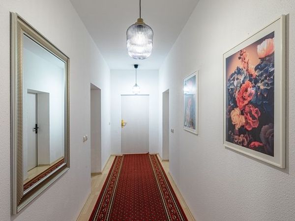 Herzlich willkommen in der Ferienwohnung Rosenduft! Verbringen Sie einen tollen Urlaub im geschichtsträchtigen Herrenhaus Carolinenhof mit weiteren 11 Ferienwohnungen und mit Blick in den Gutspark an der Mecklenburgischen Seeplatte im Müritz Nationalpark. Laden Sie Ihren Akku in der ruhig gelegenen Wohnung für 1-2 Personen wieder auf und genießen Sie vom Balkon Ihres Feriendomizils den Blick in die wunderschöne und großzügig gestaltete Gartenanlage. Entdecken Sie den Gutspark mit Teich und pausieren Sie auf den einladenden Sitz- und Grillplätzen. Sie haben in der Ferienwohnung Rosenduft die Möglichkeit zu entspannen und Ausflüge zu planen. Die Wohnung eignet sich gleichermaßen für eine kleine Familie, sowie für Gäste, die eine gemeinsame Unterkunft suchen. Es stehen Ihnen weitere 12 Ferienwohnungen im Herrenhaus zur Verfügung. Die komfortable und geschmackvoll möblierte Ferienwohnung mit 38 m² befindet sich im Erdgeschoss des Herrenhauses Carolinenhof. Der lichtdurchflutete Wohnbereich mit großen Fenstern in Richtung Gutspark lädt mit einem modernes gelbes Sofa ein, ein paar entspannte Tage zu genießen. Die offene Einbauküche verfügt über Elektroeinbaugeräte wie Kühlschrank und einer Kochgelegenheit mit 2 Herdplatten, einem Toaster, einer Kaffeemaschine und einer Mikrowelle. Die Küche ist mit zahlreichem Koch-Zubehör und einem Essbereich gut ausgestattet für einen gemütlichen Kochabend. Selbstverständlich steht Ihnen kostenfreies W-LAN in der Ferienwohnung zur Verfügung. Der Laminat-Bodenbelag, der im gesamten Wohn- und Schlafbereich der Ferienwohnung verlegt ist, wirkt freundlich und schlicht. Vom Schlafbereich aus, gelangen Sie auf den möblierten Balkon mit Fliesenfußboden. Die Möblierung im Schlafraum mit Doppelbett und Regalen sowie einer Nachttischlampe ist geprägt durch zurücknehmende grau-weiße Farbtöne und lädt zum Träumen ein. Das moderne Boxspringbett hat eine Größe von 180 cm x 200 cm mit 2 getrennten Matratzen. Ein Kleiderschrank für Ihre Garderobe befindet sich im Eingangsbereich. Das großzügige Badezimmer ist hell gefliesst und verfügt über eine Dusche, einem WC sowie einem Waschbecken. Ein Fön steht Ihnen zur Verfügung. Im Wohlfühlambiete der Ferienwohnung Rosenduft" sammeln Sie neue Energie für die nächste Fahrradtour oder einem ausgiebigen Spaziergang im Park. Die Möblierung, kombiniert mit den Wandbildern und Accessoires, ist farblich und harmonisch aufeinander abgestimmt. Die gesamte Wohnung ist einheitlich mit Verdunklungsgardinen ausgestattet und einen zur Ferienwohnung dazugehörigen kostenfreien Parkplatz können Sie direkt mit buchen. Für Fahrräder steht eine Garage die abschließbar ist zur Verfügung. Rund um das Haus befinden sich viele Freizeitmöglichkeiten wie Wander- und Radwege. Seen laden zum Baden ein und in den nächst größeren Städten Stavenhagen, Neubrandenburg oder Waren (Müritz) warten Ausflugsschiffe, Boots- und Kanufahrten und Angelseen auf Gäste. Das Herrenhaus Carolinenhof ist ein idealer Ausgangspunkt für Ganztagestouren zu Museen, Schlössern und Städtetrips. Bitte beachten Sie, es wird eine Kaution in Höhe von 100Euro erhoben. Diese wird Ihnen nach Abreise auf Ihr Bankkonto erstattet.