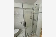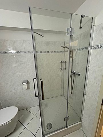 Das Bad mit Dusche und dem um 5 cm über Standartmaß erhöhten WC ist über den Flur von jedem Zimmer separat zugänglich.