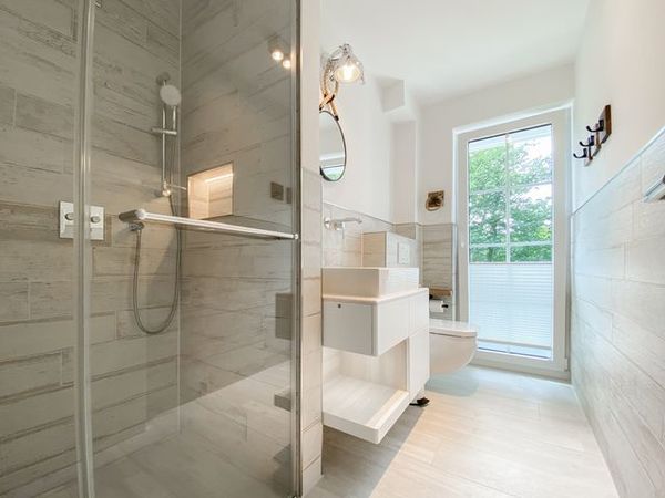 Harbour Beach 53 steht für Wohnen zwischen Hafen und Strand am 53ten Breitengrad und an der schönsten Stelle der Lübecker Bucht in Niendorf/Timmendorfer Strand. In wenigen Metern durch einen hübschen Park gelangen Sie in nur wenigen Schritten zum Strand. Genießen Sie die saubere, frische Meeresluft. Oder Sie bummeln in Steinwurfnähe durch den heimeligen Fischereihafen und geniessen einen Kaffee oder ein leckeres Fischbrötchen. Niendorf ist der ruhigere, besinnlichere Teil von Timmendorfer Strand mit dem Freistrand, dem Hafen und dem Strandkino im Sommer. In unmittelbarer Nähe bieten die Fischrestaurants, ein Italiener wie auch ein Grieche eine große Restaurant-Vielfalt in Hafennähe. Für Ihr Leib und Wohl ist also bestens gesorgt! Im East-Coast Stil mit Südstaaten-Elementen und großen Balkonen, teilweise mit Meerblick, freuen wir uns auf Gäste, die sich bei uns zuhause fühlen sollen und gerne wiederkommen. Unsere Farben sind "sand" und "weiß" verbunden mit dunklen Holzelementen, alles im Riviera Maison-Stil. Die Grohe Bäder machen aus der Dusche ein Paradies mit großer Auswahl und Einstellungen. Die hochwertigen Küchen sind bestens ausgestattet und machen Lust auf gemeinsames Kochen. Lassen sie sich überraschen durch die interessanten Holzelemente und die vielen kleinen wohnlichen Details! Das Harbour Beach 53 ist massiv gebaut mit Bio- und ökologischen Elementen wie Erdwärme, Fotovoltaik und Stromtankstelle. Für Yogagruppen und Veranstaltungen steht ein 70qm großer Übungsraum mit modernster Laserbeamer-Übertragungstechnik zur Verfügung. Die Ferienwohnung Harbour Beach 1 befindet sich im Erdgeschoss zur Parkseite und verfügt über 3 großzügige Balkone mit schönen Aussichten. Die exklusive Einrichtung und die hochwertige Ausstattung gewährleisten einen hohen Wohnstandard in einem herrlichem Ambiente für 4 Personen. Im Wohnbereich erwartet Sie ein gemütliches Sofa mit Schlaffunktion, ein anschließender Essbereich und die integrierte Küche in bester Ausstattung. Beide Schlafzimmer verfügen über Boxspringbetten (180x200 und 120x200), Verdunkelungsvorhänge und TV. Das Bad mit Walk-In Dusche und Fenster[nbsp][nbsp]ist großzügig bemessen. WLAN steht selbstverständlich kostenlos zur Verfügung und der Wohnung ist ein fester Parkplatz zugeordnet. Eine Waschmaschine und ein Trockner stehen im Keller zur gemeinschaftlichen Nutzung bereit. Wir bitten um Verständnis, dass das Rauchen sowohl im Innen- als auch Außenbereich der gesamten Anlage nicht erwünscht ist. Wir freuen uns sehr, Ihnen bei uns die Ruhe und Erholung zukommen zu lassen, die Sie brauchen! Moin und bis bald im Harbour Beach 53! [nbsp]