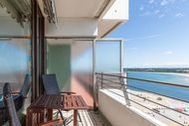 2-Zimmer-Appartement, 14. OG, ca. 64 m² mit Traveblick. Balkon, Markisen, Küche, Geschirrspüler, Vollbad/WC, Fön, TV, Stereoanlage, kostenl. W-Lan, Aufzug, inkl. Tiefgaragenstellplatz (Einfahrtshöhe: 1,85 m). Dieses strandnah gelegene und schöne Appartement ist bestens geeignet für einen erholsamen Urlaub. Auch Ihr Vierbeiner ist in diesem Appartement herzlich willkommen. Die Einrichtung ist geschmackvoll ausgewählt. Der Wohnraum ist mit einem bequemen Sofa, einem Sessel mit Fußhocker, einem Couchtisch sowie einer Glasvitrine und einer Anrichte ausgestattet. Des Weiteren finden Sie neben der separaten Einbauküche mit Durchreiche und Sichtverbindung eine stilvolle Essecke vor. In der Wohnzimmernische befindet sich eine Sitz-/Schlafcouch (140 cm x 200 cm). Im Schlafzimmer stehen ein Doppelbett (2x 90 cm x 200 cm) und ein großzügiger Kleiderschrank. Das moderne, helle Vollbad geht vom Flur ab. Den großen Balkon erreichen Sie von beiden Zimmern. Hier genießen Sie einen fantastischen Panoramablick auf die Trave mit der Passat und lebhaftem Schiffsverkehr, zur Lübecker Bucht sowie zum Hafen. Wellnessangebote wie Schwimmbad, Sauna, Beauty sowie Restaurants und Cafés sind im Haus. Lage: Direkt am Strand.