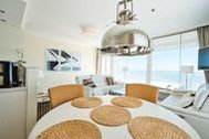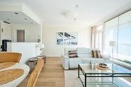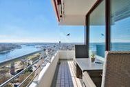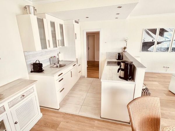 2-Zimmer-Eck-Appartement, 15. OG, ca. 75 m² mit Traveblick. Umlaufende Loggia von ca. 21 m², elektr. Markisen, Küche, Geschirrspüler, Duschbad/WC, Fön, TV, Stereoanlage, kostenl. W-Lan, Aufzug, inkl. Tiefgaragenstellplatz (Einfahrtshöhe: 1,85 m). Dieses schöne Appartement in traumhafter Lage mit einer hochwertigen und stilvollen Inneneinrichtung ist einmalig. Hier verbringen Sie eine unvergessliche Zeit und können sich, fern vom stressigen Alltag, wunderbar entspannen. Der Wohnraum ist mit einer zweiteiligen Couchgarnitur, einem Couchtisch sowie einem Esstisch mit vier Stühlen ausgestattet. Gegenüber befindet sich die voll ausgestattete, offene Küche. Im Schlafzimmer befinden sich ein bequemes Boxspringbett (2x 100 cm x 200 cm) und eine großzügige Schrankwand mit spektakulärem Fotomotiv. Vom Flur abgehend gelangen Sie in das moderne Duschbad. Den sonnigen Balkon erreichen Sie vom Wohn- und Schlafzimmer. Hier genießen Sie den Ausblick zur Mecklenburger Bucht, zur Altstadt und zur Trave mit lebhaftem Schiffsverkehr. Wellnessangebote wie Schwimmbad, Sauna, Beauty sowie Restaurants und Cafés sind im Haus. Lage: Direkt am Strand.