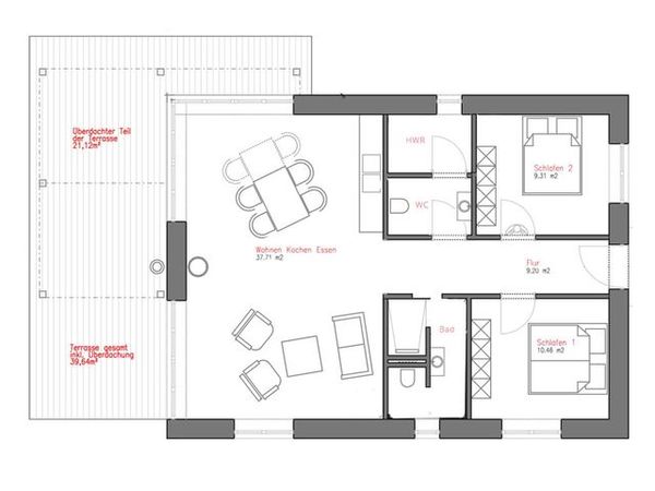 - teilweise überdachte Terrasse in Südwest Richtung mit Sitzmöbeln, Sonnenliegen und Gasgrill