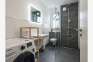 Das modern eingerichtete Badezimmer ist mit einer hochwertigen bodengleichen Dusche sowie einer Waschmaschine ausgestattet.