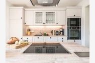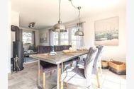 Es ist detailverliebt und mit viel maritimem Charme, eingerichtet. Der geschützte und begrünte Außenbereich steht für Sie zur Verfügung. Das Erdgeschoss gliedert sich in einen geräumigen Wohn- und Essbereich mit angrenzender, offener Küche. Eine vielseitig nutzbare Kochinsel lädt zum gemeinsamen Kochen ein und trennt den ausgedehnten Raum in gemütliche Bereiche. Alle Annehmlichkeiten des modernen Lifestyles, von Herd über Mikrowelle und Spülmaschine bis hin zu Kühlschrank mit Gefrierfach sind vorhanden. Ein großer Kamin wärmt an kalten Tagen und sorgt für eine romantische Stimmung. Das geschmackvoll ausgestattete Badezimmer mit Dusche und einer anliegenden Sauna bieten ein Flair zum Wohlfühlen.