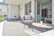 Lage Schöne 2-Zimmer-Ferienwohnung im Souterrain einer neuen Wohnanlage, Villa Scharbeutz direkt gegenüber dem Kurpark, in Zentrumsnähe. Kurze Wege an den Strand. Die Dünenmeile mit zahlreichen Cafés, Restaurants und Geschäften ist fußläufig in wenigen Minuten zu erreichen. Morgens frische Brötchen der Bäcker ist in wenigen Schritten erreichbar. Ausstattung Lichtdurchflutetes Wohnzimmer durch die bodentiefen Fenster, die mit einem Licht- und Sichtschutz versehen sind. Außenrollläden im Wohnzimmer. Hochwertige Einbauküche mit Induktionsherd, Backofen, Kühlschrank mit Gefrierfach, Geschirrspüler, Toaster, Wasserkocher, Eierkocher, Elektro-Tischgrill, Sodastreamer, Espressomaschine, Nespresso-Kaffeemaschine mit Milchaufschäumer. Feiner Essbereich. Der Wohnbereich ist mit einem bequemen Sofa( läßt sich mit wenigen Handgriffen in ein Schlafsofa verwandeln), einem Wohnzimmertisch, einem TV (48 Zoll) sowie einem Internetradio ausgestattet. Aus dem Wohnbereich gelangen Sie auf die Terrasse nach Süden. Hier stehen Ihnen Tisch und zwei Stühle zur Verfügung. Das Schlafzimmer ist mit einem Boxspringbett (1,80mx2,00m) ausgestattet und verfügt über einen Einbauschrank, 2 Nachttische sowie einen Wand-TV. [nbsp] (43 Zoll). Das Duschbad mit bodengleicher Dusche, Regendusche sowie Handbrause, Handtuchheizkörper, Fön, Kosmetikspiegel. Die ganze Wohnung ist mit einer Fußbodenheizung sowie mit einem Sicht- bzw. Lichtschutz an allen Fenstern ausgestattet. Besonderheiten Regendusche. Fußbodenheizung, Außenrollläden im Wohnbereich. Wohnungsbezogene Waschmaschine und Trockner im Waschkeller. Bügelbrett und Reisebügeleisen. Nichtraucherwohnung. Tiere sind leider nicht erwünscht. Für die Fahrräder befindet sich eine Abstellmöglichkeit vor der Haustür im Innenhof. Es ist nicht gestattet, die Fahrräder in das Treppenhaus, in den Keller oder mit in die Wohnung zu stellen. Wir freuen uns auf Sie. [nbsp]