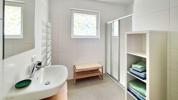Die Ferienwohnung Maria befindet sich in einem 2020 neu errichteten Gebäude im sogenannten 'Obermarkt' von Mondsee, nur 3 Gehminuten vom historischen Marktplatz und der Basilika entfernt. Die Wohnung ist liebevoll modern eingerichtet und hat einen Balkon in Richtung Nordwesten. In der Wohnung finden Sie zwei Schlafzimmer, eines mit einem Doppelbett, eines mit zwei Einzelbetten. Es gibt ein getrenntes WC. Das Bad ist mit einer geräumigen Dusche und Handtuchheizkörper ausgestattet. Handtücher und Bettwäsche werden wöchentlich zur Verfügung gestellt. Sollten Sie einen häufigeren Wechsel benötigen, bitten wir um Information vor Anreise. Die Ferienwohnung ist sehr geräumig, hat einen großen Wohn-Essbereich mit einem Esstisch für 5 - 6 Personen. Sie finden in der Wohnung eine Waschmaschine, Wäscheständer zum Trocknen Ihrer Wäsche, Bügelbrett und Bügeleisen, in der Küche eine Mikrowelle, Toaster, Wasserkocher und Filter-Kaffeemaschine.