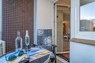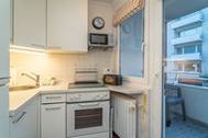 In der voll ausgestatteten offenen Küche mit Fenster befinden sich Geschirrspüler, Cerankochfeld, Mikrowelle und ein Backofen. Kaffeemaschine, Wasserkocher und Toaster gehören zur Grundausstattung. Über die Küche gelangt man auf den Seitenbalkon, hier kann man auf einem weiteren Essplatz die Morgensonne genießen.
