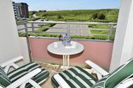 Exklusive, komplett mit Designerboden ausgestattete 2-Zimmer-Ferienwohnung, ca. 48 qm, Nichtraucher, mit W-Lan,[nbsp][nbsp]in der 3. Etage zur Westseite für max. 4 Personen mit Westbalkon (Nachmittagssonne, mit Balkonmöbeln und Auflagen).