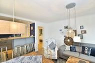 Vom Vorflur gelangt man direkt ins neue Duschbad/WC (extraflacher Duscheinstieg, Handtuchtrockner, Bidet, Waschtisch [&] Föhn) und ein paar Schritte weiter in den gemütlichen Wohnraum (Ecksofa, verlängerbarer Esstisch, Kinderstuhl, Kabel-Flachbild-TV, WLAN [&] Internet-Radio [&] kostenfreie Telefonie ins dt. Festnetz (o. Gewähr)). Der mit einer großzügigen Theke anschließende, offene Küchenbereich lädt auch mal zur Zubereitung eines umfangreicheren Menüs ein (Geschirrspüler, Backofen-/Mikrowellenkombination, 4-flammiges Ceran-Kochfeld, großer Kühlschrank mit 3*-Gefrierfach) und hält eine Kaffee- [&] Nespresso-Maschine, Wasser- [&] Eierkocher sowie einen Toaster als Grundausstattung für Sie bereit.