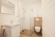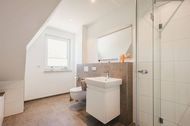 Das Badezimmer im Obergeschoß bietet neben einer ebenerdigen Dusche zusätzlich eine große Badewanne. Hier entspannen Sie nach langen Spaziergängen in der Natur.
