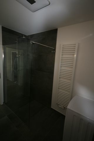 Bad mit ebenerdiger Dusche und Doppelwaschbecken