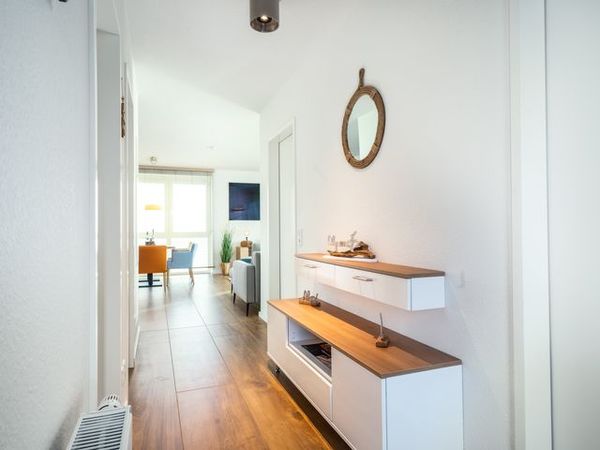 Das Waterkant Apartment besitzt eine großzügige Loggia und lässt den Sonnenuntergang und das Treiben des Hafens für jedermann zum festen Bestandteil am Abend werden. Der direkt an das Wohnzimmer angrenzende Essbereich bietet eine offene Einbauküche im gehobenen Standard und Zugang auf die angrenzende Loggia. In welche Richtung man auch schaut, es ist einfach immer ein einzigartig traumhaftes Erlebnis. An der Waterkant wird ein unvergesslicher und erholsamer Urlaub garantiert. Vom Wohnzimmer aus gelangt man über den Flur in die einladenden Schlafzimmer mit einem herrlichen Meerblick. Besonders an Sommertagen ist das Lichtspiel des Himmels zum Abend hin wunderschön und der Sonnenuntergang ist an diesem Standort mit keinem anderen Ort zu vergleichen. Durch die großen Fensterflächen gelangt sehr viel Licht in jedes einzelne Zimmer, sodass diese zu jeder Tageszeit hell und einladend wirken und dem Bewohner sofort ein Gefühl von Urlaub vermitteln.