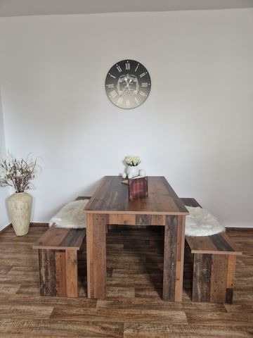 Das Wohnzimmer ist mit einem TV, einer gemütlichen Schlafcouch für 2 Personen sowie einem großen Esstisch für gessellige Abende, ausgestattet. Desweiteren kann noch für eine 5.Person ein Zustellbett mit aufgestellt werden.