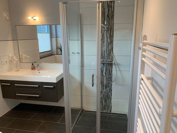 Die Bäder bieten moderne Waschtische und Raindanceduschen. Das große Bad verfügt zusätzlich über eine Badewanne und eine Sauna. Alle Räume werden über eine Fussbodenheizung beheizt..
