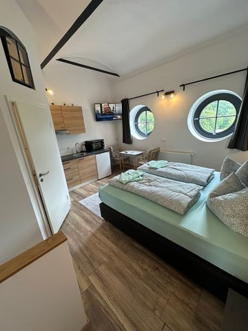 Die Ferienwohnung besteht aus eimem Zimmer mit Badezimmer .Eine kleine Küche ist mit integriert .