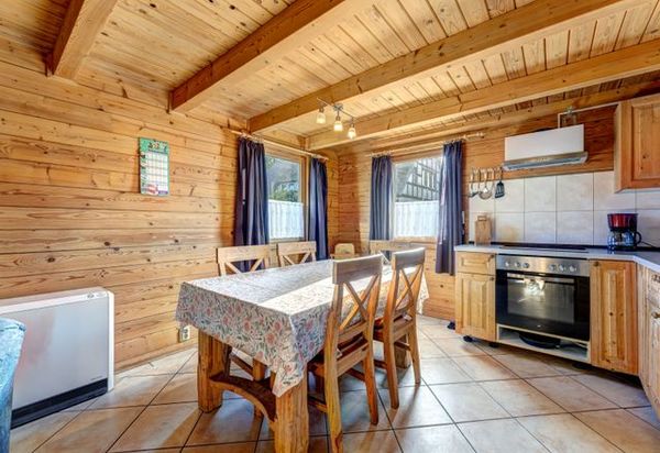 Hübsches uriges Ferienhaus in Zinnowitz für bis zu 7 Personen 4 Erw. und 3 Kinder bis 12 Jahre), mit viel Platz. Das Wohnzimmer ist mit einer Sitzecke und einem Flat-TV ausgestattet. Anschließend befindet sich die Küche mit einer komplett eingerichteten Küchenzeile incl. E-Herd, Backofen, Toaster, Wasserkocher. Eine Mikrowelle wie auch ein Geschirrspüler sind nicht vorhanden.
