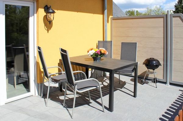 Highlight der Fewo Albert: Sie hat durch die Gebäudestruktur als einzige Wohnung 2 Terrassen. Eine Terrasse hat Süd-Ost-Ausrichtung. Die andere hat Süd-West-Ausrichtung, sodass Sie die Abendsonne in einer rustikalen Sitzecke genießen können.