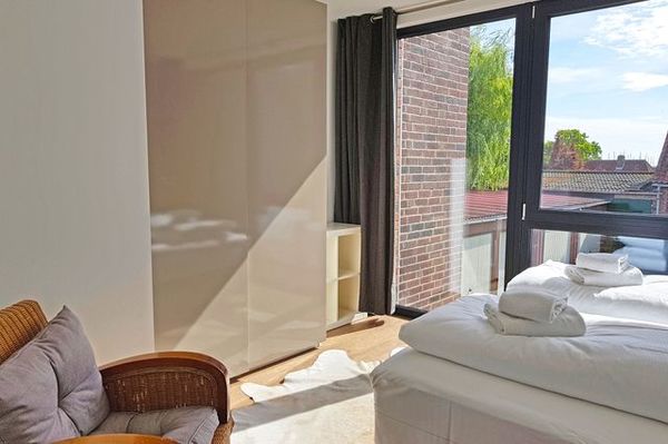 Diese Ferienwohnung befindet sich direkt im Zentrum von Heiligenhafen im "Fischerdorf Heiligenhafen". Die stilvolle und mondäne Wohnanlage mitten in der historischen Altstadt begeistert mit höchstem Niveau zum Wohnen und der Nähe zum Marktplatz, Strand und Yachthafen. Das komfortable Fischerdorf Hafenloft (mit Meerblick) bietet auf ca. 64 m² Wohnfläche (mit Fussbodenheizung) über 2 Ebenen im 1. OG und DG ausreichend Platz für bis zu 4 Personen. Die Ferienwohnung ist modern eingerichtet und überzeugt mit einem geschmackvollem Wohnbereich im DG. TV und WLAN zur Unterhaltung sind selbstverständlich. Die bodentiefen Fenster im Wohnbereich bringen viel natürliches Licht in die Wohnung und bieten einen Blick auf die Ostsee. Die Ferienwohnung ist besonders für Familien und Paare geeignet, da sie über zwei Schlafzimmer mit Doppelboxspringbetten verfügt. Beide sind im 1. OG untergebracht. Allergiker geeignete Bettwäsche und Handtuchsets können gegen Gebühr geliehen werden. Baby-Reisebett und Hochstuhl können im Bedarfsfall ebenfalls gegen Gebühr geliehen werden. Die Fensterfront im großen Schlafzimmer öffnet dabei zahlreiche Blickwinkel und sorgt für jede Menge Licht. Für Verdunklung und nächtliche Ruhe sorgen Vorhänge. Von den Schlafzimmern erreichen Sie bequem das Badezimmer mit ebenerdiger Dusche, Waschbecken und WC. Hier holen Sie sich nach erlebnisreichen Tagen die Frische wieder. Unter der Treppe im Flur ist noch eine kleine Kommode für die alltäglichen Sachen. Über die Treppe erreichen Sie leicht das Dachgeschoss. Dort befindet sich der gemütliche Wohnbereich mit der offenen, voll ausgestatteten Küche mit Spüler. Der Essbereich ist direkt angeschlossen. Damit müssen Sie auch im Urlaub auf Wohnkultur nicht verzichten. Auf dem Balkon mit Westausrichtung geniessen Sie zudem eine traumhafte Urlaubszeit. Der Marktplatz ist in 300 m und der Hafen nur 200 m entfernt. Zur Seebrücke und Strand sind es ebenfalls nur ca. 900 m. Erleben Sie einen wunderbaren Urlaub in dem Fischerdorf Hafenloft. WLAN ist vorhanden. Ein Parkplatz (Tiefgarage - max. Pkw-Höhe 2 m) ist im Fischerdorf entsprechend ausgewiesen. Weitere Parkplätze finden Sie auf öffentlichen Stellflächen direkt ausserhalb der Anlage. Ein Fahrrad-Abstellraum ist neben der Tiefgarage vorhanden. Hier können Sie Ihre mitgebrachten Räder oder E-Bikes einschließen. Dies ist eine Nichtraucher-Unterkunft! Keine Haustiere erlaubt.