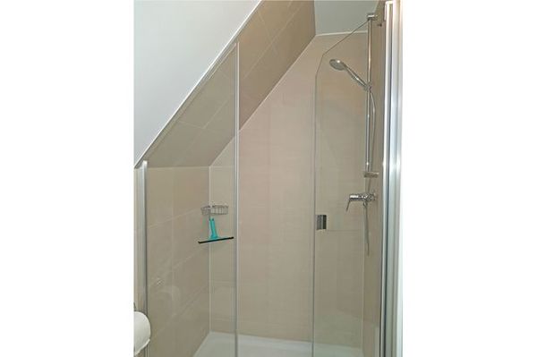 Besonders für Familien und kleine Gruppen ist dieses Ferienhaus optimal, denn es verfügt über drei gemütliche Schlafzimmer. Im ersten Obergeschoss erwartet Sie ein komfortables Doppelboxspringbett, während sich im Dachgeschoss ein weiteres Doppelboxspringbett sowie zwei Einzelboxspringbetten befinden. Für kleine Gäste stehen ein Baby-Reisebett und ein Hochstuhl bereit. Auf Wunsch können Allergiker-geeignete Bettwäsche und Handtuchsets gegen Gebühr gebucht werden. Vorhänge und Plissees sorgen für die nötige Verdunklung und eine ruhige Nacht.