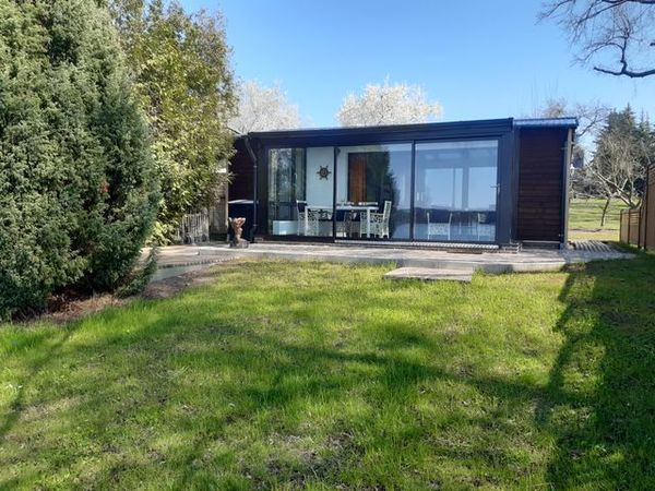 Dieser Bungalow im maritimen Stil befindet sich nur 7m vom See entfernt und verfügt über eine eigene Liegewiese.
