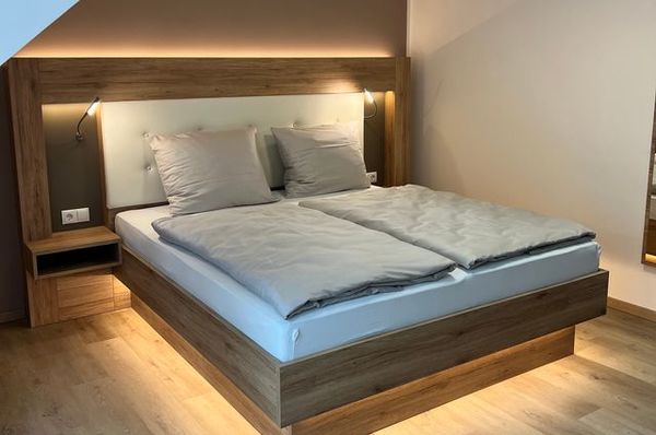 Genießen Sie Ihren Aufenthalt in unseren Doppelzimmern mit Balkon im Obergeschoss des Gästehauses.