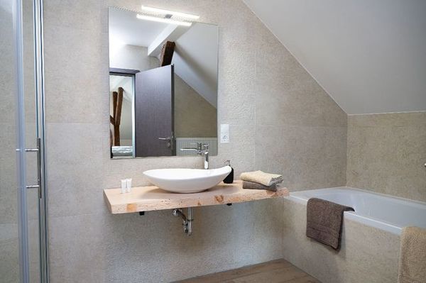 Das Zimmer ist bequem mit dem Fahrstuhl erreichbar und verfügt über Flatscreen TV, WLAN sowie Dusche, Badewanne und WC.