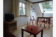 2015 neu ausgebaute Ferienwohnung im Obergeschoss. Die FeWo verfügt über einen Schlafraum mit einem 1,60 m breitem Doppelbett und einem Zustellbett. Der Wohnraum ist mit einer Sitzgruppe einem Essplatz und einer ganz kleinen Küchenzeile ausgestattet. Das schmale Bad mit DU/WC ist durch die Dachschräge sehr eingeengt. Ein Freisitz mit Gartenmöbeln befindet sich vor dem Haus.