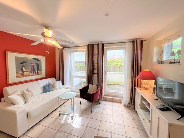 Genießen Sie Ihren Urlaub in diesem wunderschönen 2-Zimmer-Apartment im Souterrain. Das Apartment verfügt über einen großen Wohn-/Essbereich mit direktem Zugang zur Terrasse. Die Küche ist komplett ausgestattet und lädt zum Kochvergnügen ein. Das schöne Schlafzimmer verfügt über ein Doppelbett und bietet genug Stauraum für Ihre Sachen. Das Duschbad rundet das Angebot dieser traumhaften Immobilie ab.