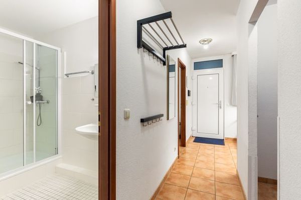 Großer Balkon in westliche Richtung. Waschmaschine und Trockner gegen Gebühr im Haus. PKW-Stellplatz in der Tiefgarage (Durchfahrtshöhe 2,00 m).