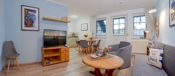 - Wohnzimmer mit SAT-TV, Radio, vollwertig ausziehbare Schlafcouch