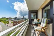 Komfortable 2-Zimmer-Nichtraucher-Ferienwohnung, ca. 52 qm in der 3. Etage mit großzügiger Südloggia (mit Balkonmöbeln und Auflagen) für max. 4 Personen.