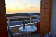 - Westbalkon: Austritt vom Wohnzimmer, Westseite, ausgestattet mit Tisch und bequemen Sesseln, ideal für den Sonnenuntergang