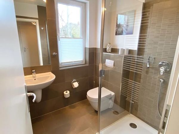 • 2 Badezimmer mit ebenerdiger Dusche, beheiztem Handtuchhalter und Tageslicht