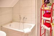 Die Ferienwohnung Rosentraum befindet sich in der oberen Etage des Hinterhauses. Sie haben direkten Zugang zum Garten, welcher liebevoll mit kleinen Sitzecken zum Verweilen ausgestattet ist. Die 25 qm große 1-Raum-Wohnung ist ideal ausgestattet für zwei Personen. Sie ist hochwertig und mit Liebe zum Detail romantisch eingerichtet, die warmen Farben erschaffen eine Atmosphäre zum Wohlfühlen. Die Pantryküche befindet sich unter einer Dachschräge und ist ausgestattet mit einer Spüle, einem Ceran Herd mit zwei Platten, Kühlschrank mit Gefrierfach, Wasserkocher Toaster und Kaffeemaschine. Der Schlafraum bietet neben einem großzügigen Doppelbett (1,80 x 2,00 m), einem Kleiderschrank mit viel Stauraum auch einen Essbereich mit gemütlicher Sitzecke sowie einem Sofa. Zur Unterhaltung bietet die Wohnung einen Flachbild TV und eine Stereoanlage. Der Schlafraum verfügt über ausreichend Platz für ein Babyreisebett. Das moderne Bad mit Fliesen in Holzoptik ist mit einer Sitzbadewanne und einer Toilette ausgestattet. Über dem Waschbecken befindet sich ein großer beleuchteter Spiegel. Außerdem sind ein Föhn sowie Handtuchtrockner vorhanden. Aus Rücksicht auf andere Gäste ist das Rauchen in der Wohnung nicht gestattet. WLAN ist kostenfrei.