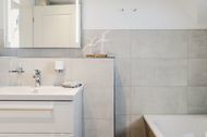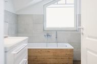 Das Badezimmer mit Tageslicht verfügt über eine Badewanne und eine hochwertige, bodentiefe Dusche mit Regenwald-Funktion, sodass Sie in Ihrem Urlaub entspannen können. Wie in der gesamten Wohnung genießen Sie auch hier den Komfort der Fußbodenheizung.