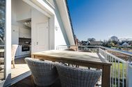 Der an den Wohnbereich angrenzende Balkon mit einem herrlichen Ausblick in Süd-Westrichtung lädt zum Verweilen auf komfortablen Möbeln ein. Der gemütliche Standkorb fehlt natürlich auch nicht. Hier können Sie den Verlauf der Sonne bis zum Sonnenuntergang in vollen Zügen genießen.