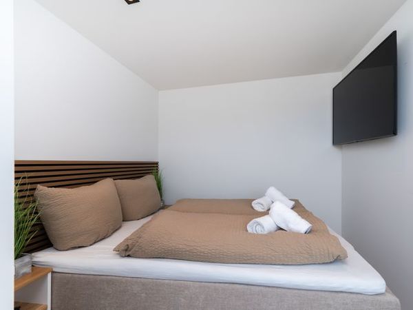 - 1. Schlafzimmer mit Boxspringbett (1,80 x 2,00), großer Kleiderschrank, großer Flachbildfernseher (internetfähig), Babybett möglich, Zugang zur Dachterrasse