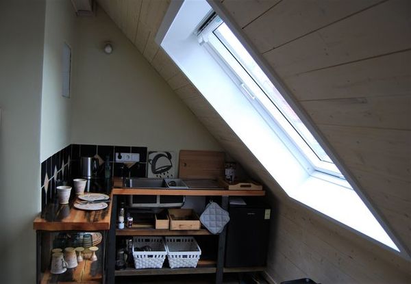Die lichte Ferienwohnung unterm Dach ist ein kombinierter Schlaf- und Wohnraum mit integriertem Küchenbereich. Sie ist für 2 Personen ausgelegt, kann aber nach Absprache für eine 3. Person mit einem Schlafsessel aufgebettet werden (15 EUR/Nacht). Küchenaustattung und Möbel, auch für die großzügige Terrasse, sind ausreichend vorhanden. Vom kleinen Essplatz, aber auch vom Bett aus, haben Sie einen wunderbaren Blick in den Garten. Ein Internetzugang ist möglich. Fernseher kann auf Anfrage ebenfalls gestellt werden. Bettwäsche und Handtücher sind inklusive. Die Wohnung verfügt über ein kleines Bad mit Dusche und eigenem Fenster. Der PKW-Stellplatz am Haus kann genutzt werden. Wenn es etwas kühler wird und Sie möchten, dass die Heizung eingeschaltet wird kommen 5 Euro /Ü Heizungskosten dazu.