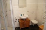 - Badezimmer mit Dusche, WC, Spiegel und Waschmaschine