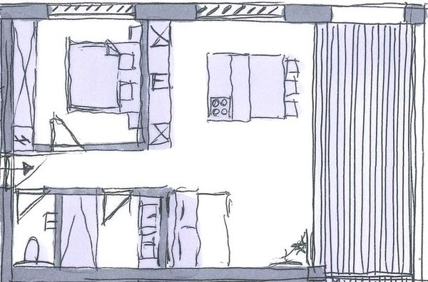 48 m² große Wohnung im Erdgeschoß mit 1 Schlafzimmer