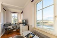 Willkommen in Doppelzimmer 5 ein lichtdurchfluteter Rückzugsort voller Charme (ca. 19,8 m²), liebevoll gestaltet für unvergessliche Tage zu zweit oder ganz für sich allein. Lassen Sie den Blick schweifen über die glitzernde Ostsee am Horizont, den kleinen Hafen von Thiessow, den weiten Greifswalder Bodden bis hin zu den sanften Hügeln der Zicker Berge. Im behaglichen Erker mit drei Fenstern und zwei gemütlichen Ohrensesseln dürfen Sie einfach loslassen, träumen und die Farben des Sonnenuntergangs auf sich wirken lassen.
