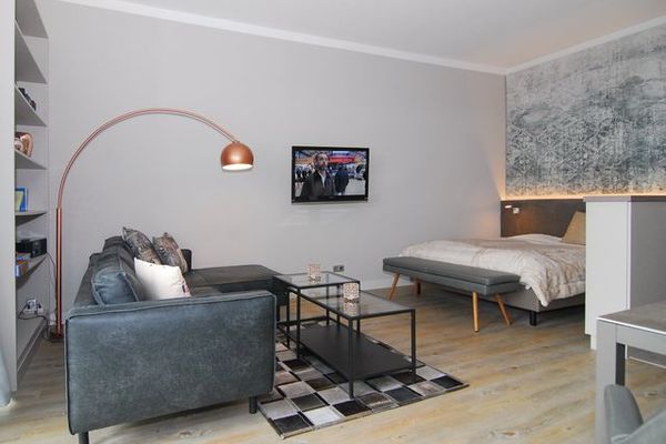 Moderne 1-Zimmer-Ferienwohnung, ca. 44m² im Haus Mauritius. Nichtraucher-Whg.! Wohn-/Schlafraum mit Doppelbett, 2-Sitzercouch und Tisch, Essplatz, Kabel-TV, Küchenzeile mit 2-Plattenherd und Mikrowelle, Flur, Duschbad/WC, gr.Südbalkon, Strom nur über Schlüsselkarte aktivierbar. Keine Tierhaltung gestattet! Fahrradkeller vorhanden! Pkw-Stellplatz kann kostenpflichtig hinzugebucht werden. Bettwäsche und Handtücher sind zur Anreise aufgezogen! Internet (ohne Gewähr).