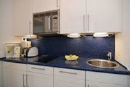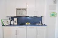 Hübsches1-Zimmer-Ferienwohnung, ca. 34 qm im Haus Sylter Welle, 4 OG. Nichtraucher-Whg.! Wohn-/Schlafraum mit Westbalkon und Meeresblick, 2 Einzelschrankbetten, Esstisch mit 2 Lederstühlen am Fenster und Blick auf das Meer, Zweisitzer-Couch, Vitrine-und Kleiderschrank, Flat-TV und Radio. W-Lan (ohne Gewähr) Das Apartment ist mit Holzlaminat ausgelegt. Küchenzeile im Flur mit Mikrowelle und Geschirrspüler, Vollbad / WC mit Duschvorrichtung. Tierhaltung ist nicht gestattet. Bettwäsche und Handtücher sind zur Anreise aufgezogen. Ein PKW-Stellplatz kann kostenpflichtig zugebucht werden.
