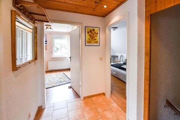 Die Ferienwohnung ist ca. 70 qm groß, hat Platz für maximal 5 Erwachsene und wurde modern und komfortabel mit Internetzugang eingerichtet. Sie kann über einen eigenen Eingang und eine Treppe ins Obergeschoss erreicht werden.