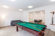 Ihre Kinder dürfen sich auf den vielseitig gestalteten Freizeitbereich (390 m²) im Souterrain mit Tischtennis, Kickertisch, Schachbrett und Spielezimmer freuen, der selbst an "Schlechtwettertagen" keine Langeweile aufkommen lässt. Erwachsene finden am Billardtisch oder in der gemütlichen Lounge-Ecke Ausgleich mit einem guten Buch oder Musik im Ohr.
