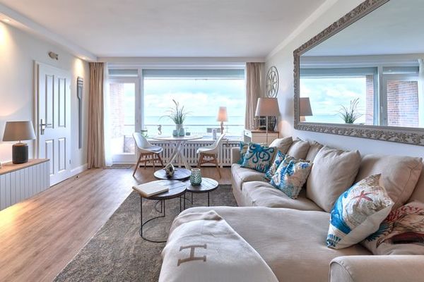 1A plus-Lage mit 100 % Meerblick. Exklusive 2-Zimmer-Ferienwohnung, für 2+1 Personen,[nbsp] im 1.OG. Fahrstuhl. W-LAN, Smart TV und Magenta TV. Pkw-Stellplatz im Carport. Balkon mit Tisch und Stühlen.