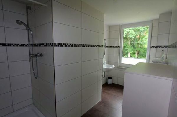 Beide Bäder sind gefliest und haben jeweils eine Dusche, sowie ein WC.