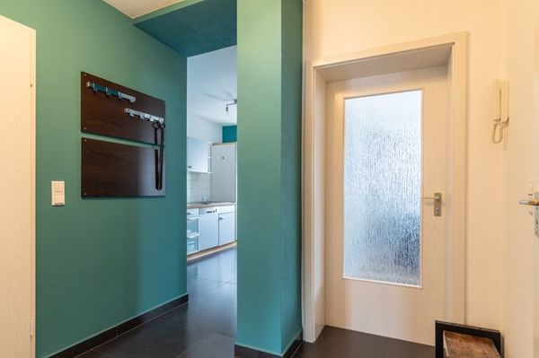 Die Küchenzeile ist mit einem Cerankochfeld mit 4 Platten, Backofen, Dunstabzugshaube, Mikrowelle, Kühlschrank mit Gefrierfach, Geschirrspüler, Elektrogeräten wie Filter-Kaffeemaschine, Senseo-Pad-Kaffeemaschine, Toaster, Wasserkocher und natürlich mit allem notwendigen Geschirr, Besteck und Gläser ausgestattet. Ebenso befindet sich ein Leifheit-Wandwäschetrockner und ein Staubsauger in der Küche.