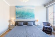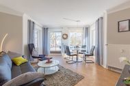 Im zentrumsnahen Backsteinhaus liegt die 2-Zimmer-Ferienwohnung Meer-Glück - Wohnung Nr. 4 im Ostseebad Boltenhagen. Die moderne und in den Farben des Meeres gestaltete Ferienwohnung hat mit 55 qm, einem Wohnzimmer und einem Schlafzimmer Platz für bis zu 3 Personen. Die Lage im zentral gelegenen Backsteinhaus im 1. OG bedeutet für Sie als Gast kurze Wege zum Strand und zu den im Ortskern liegenden Restaurants von Boltenhagen. Vom großzügig geschnittenen, hell möblierten Eingangsbereich führt Sie der Weg direkt ins moderne Wohnzimmer mit Essbereich. Der große Flatscreen-TV, ein DVD-Player und ein CD-Player sorgen für Ihre Unterhaltung. Die Wohnung hat einen Internetzugang über WLAN. Bodentiefe Fenster bringen viel Licht in den Wohnraum. Sie lassen sich mit den vorhandenen Plissees verdunkeln. Vom Wohnbereich aus erreichen Sie den östlich ausgerichteten Balkon mit modernen Balkonmöbeln. Die Doppelschlafcouch im Wohnbereich nutzen Sie mit ihrer Liegefläche von 1,40 m Breite als Doppelbett. Separat gelegen ist die moderne Einbauküche mit vielen Küchengeräten ausgestattet. Mit Mikrowelle, Backofen, 4-Platten-Cerankochfeld, Gefrierfach, Geschirrspüler, Kaffeemaschine, Kühlschrank, Wasserkocher und Toaster finden Sie genau die elektrischen Küchengeräte vor, die Ihnen das Zubereiten Ihrer Mahlzeiten so einfach wie möglich machen. Im Schlafzimmer schlafen Sie im 1,80 m breiten Doppelbett. Der große Kleiderschrank bietet Platz für Ihre Urlaubsgarderobe. Hier befindet sich der zweite Flatscreen-TV. Die farblichen Akzente und die hellen Möbel geben diesem Zimmer das passende Meergefühl für Ihren Ostseeurlaub. Die großen Fenster geben dem Raum viel Licht. Plissees sorgen hier für Sichtschutz und Verdunkelung. In der Wohnung ist eine Internetanbindung mit WLAN verfügbar! In modernen Grautönen gefliest ist die barrierefreie Walk-In Dusche ist. Sie bietet viel Platz und angenehmes Duschvergnügen nach dem Tag am Strand. Als besonderes Ausstattungsmerkmal nutzen Sie zu dieser Ferienwohnung einen Strandkorb (nur während der Strandkorbzeit Anfang Mai bis Ende September) gratis. Er steht am Strandzugang 7. Direkt am Haus befindet sich der kostenfreie PKW-Stellplatz. Hinweis zur Bettwäsche: Die Bettwäsche ist nicht inklusive, wir bieten Ihnen aber an unser Wäschepaket pro Person kostenpflichtig dazuzubuchen. Ein Hinweis für Allergiker: Die gesamte Wohnung ist mit Allergiker-freundlichem Design-Belag ausgelegt. In der Wohnung darf nicht geraucht werden. Haustiere sind nicht gestattet. Besonderheiten Buchung: Sie buchen diese Ferienwohnung mit einer Mindestmietdauer von 3 Nächten. In der Hauptsaison ab Ende Juni bis August und Weihnachten/Neujahr buchen Sie mit einer Mindestmietdauer von 5 Nächten und ohne Buchungslücken. Hinweis zur Kurtaxe: Da wir ein Kur- und Heilbad sind, erhebt unsere Gemeinde eine Kurtaxe. Eine Ermäßigung können Sie geltend machen, sofern Sie einen Schwerbeschädigten-Ausweis besitzen.